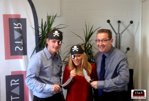 Damian Scattergood Director of STAR Translation in Dublin, with Bryan Fitzsimons and Marine Blet getting ready to talk Pirate! Today is “International Talk like a Pirate Day!”.