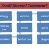 A set of topical vocabulary that should be grouped under such headings as "food, disease, treatment'. Studentds work in groups or pairs to classify words.